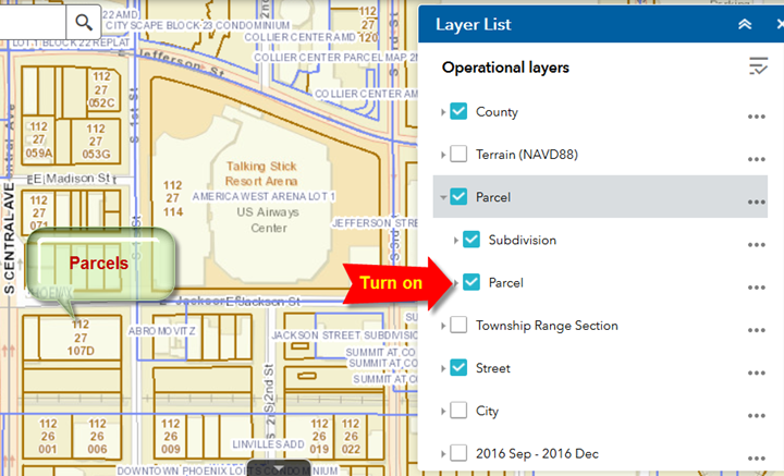 Turn on the Parcel Layer within the Parcel Layer Group.