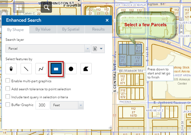 With the Extent Tool engaged, select a few Parcels.