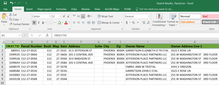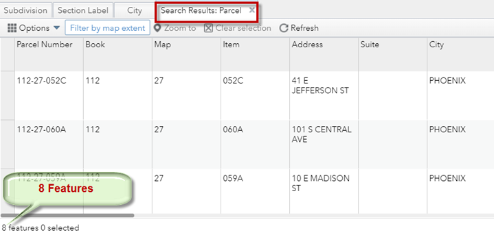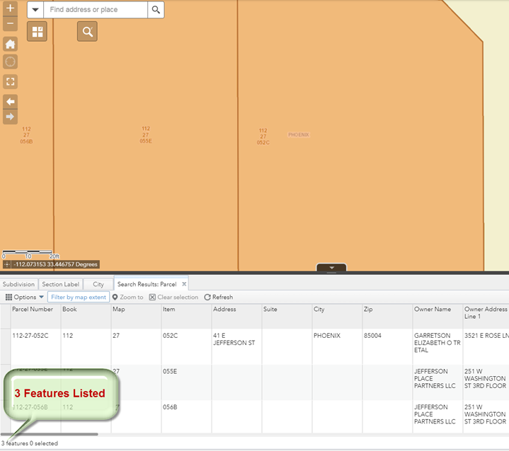 The Attribute Table will only show the 3 Parcels visible within the current map extent.