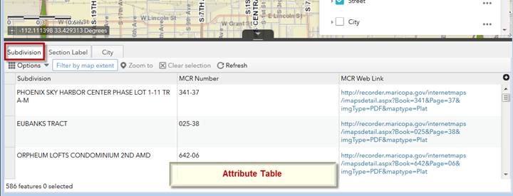 Note: By default, only the features that are shown in the display will be listed in the Attribute Table.
