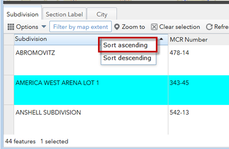 The map will zoom to the selected Subdivision.