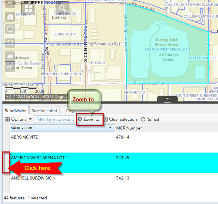 You are going to select Subdivision = AMERICA WEST ARENA LOT 1