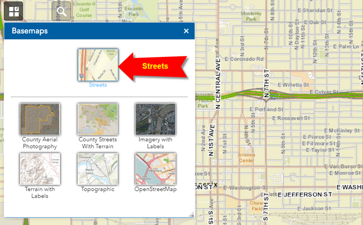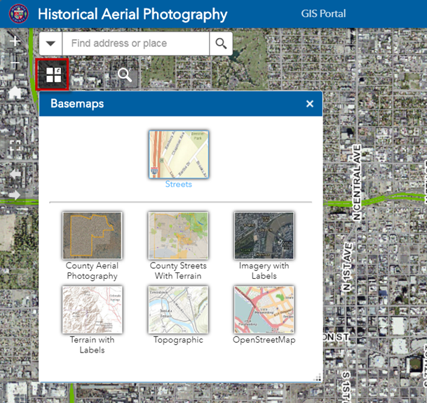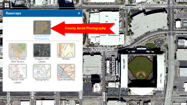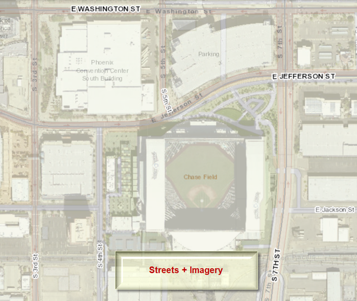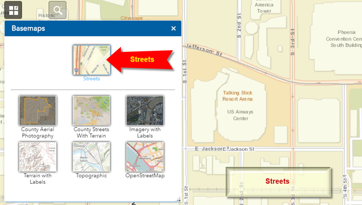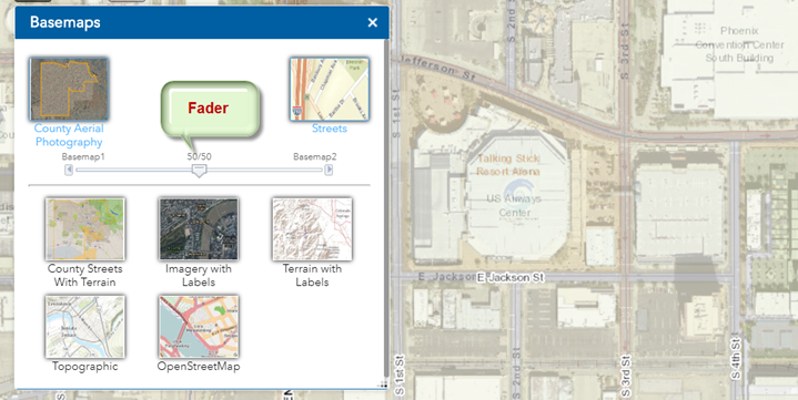 You can adjust the slider to fade between the Aerial Basemap and the Streets Basemap.
