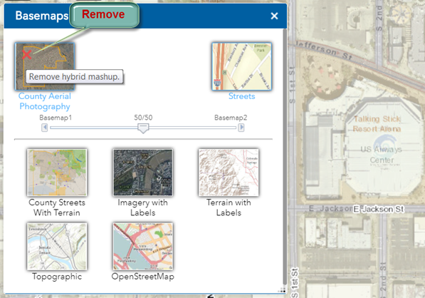 Click on the Red X Icon to remove the Aerial Basemap from the mashup.