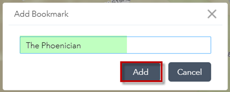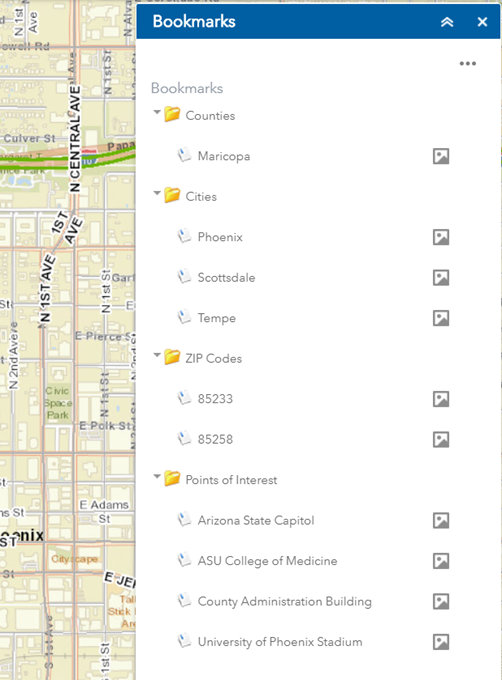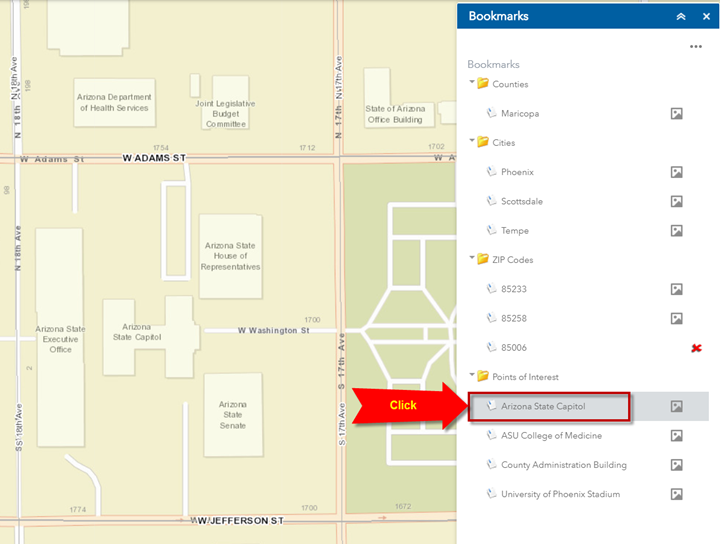 When you click on a Bookmark, the map zooms to that area.