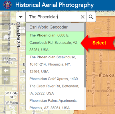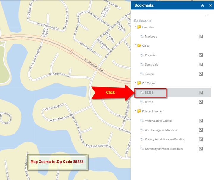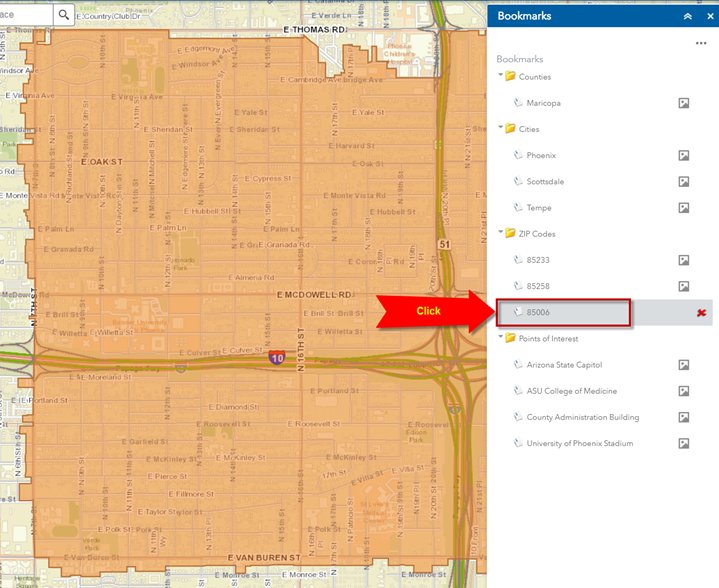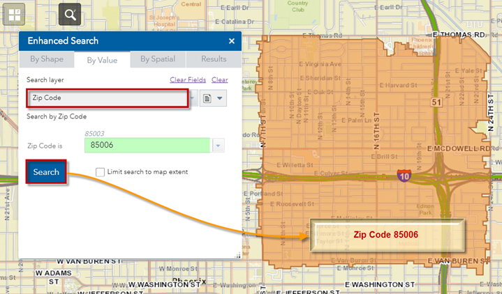 Use the Enhanced Search Widget to zoom the map to Zip Code 85006.