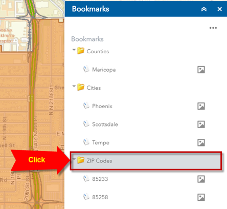 Click to select the ZIP Codes folder under Bookmarks.