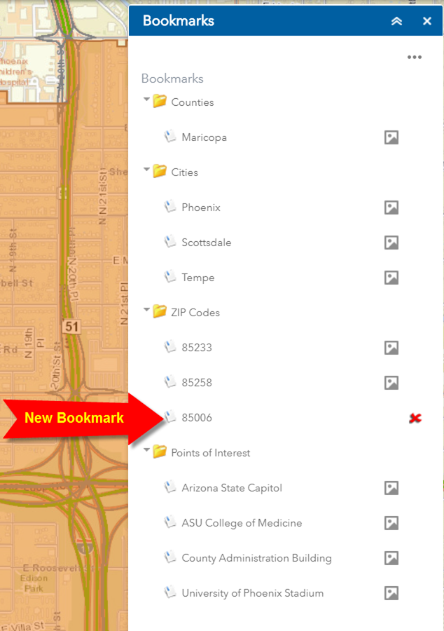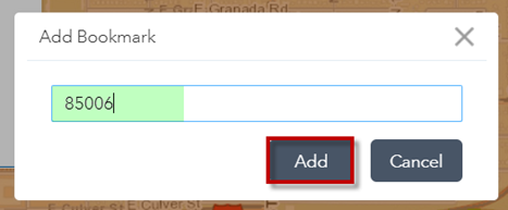 You are going to add a new Bookmark for Zip Code 85006.