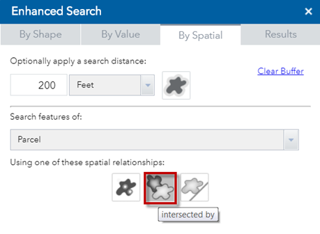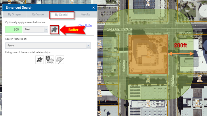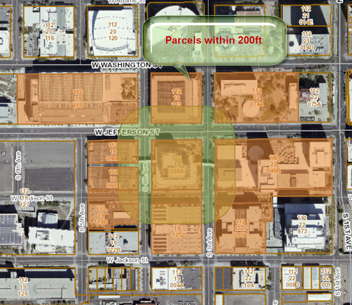 This highlights all the Parcels that are intersected by the 200ft buffer.