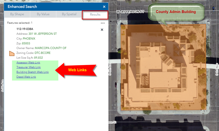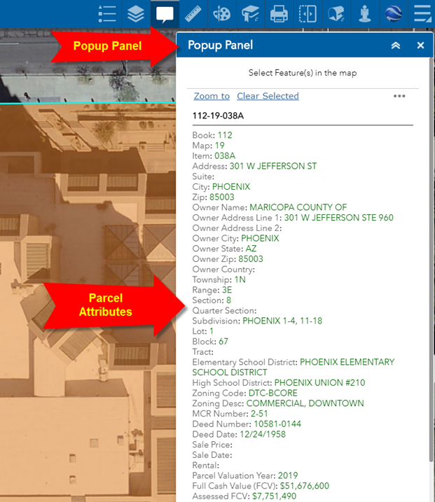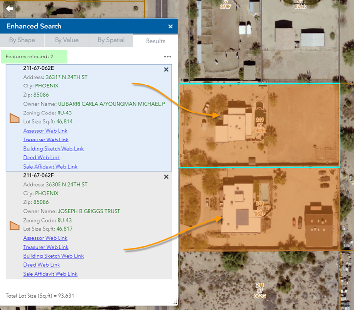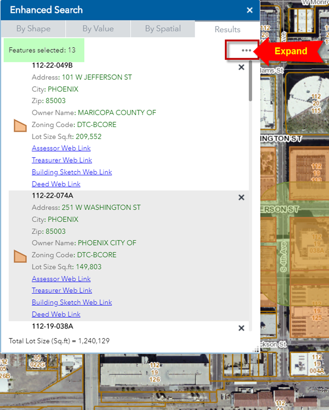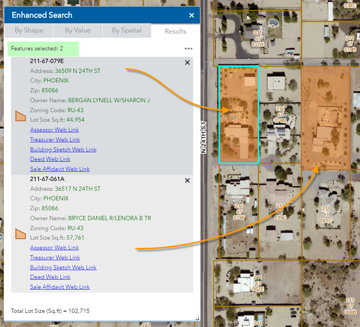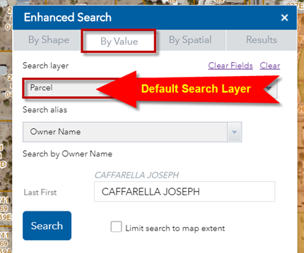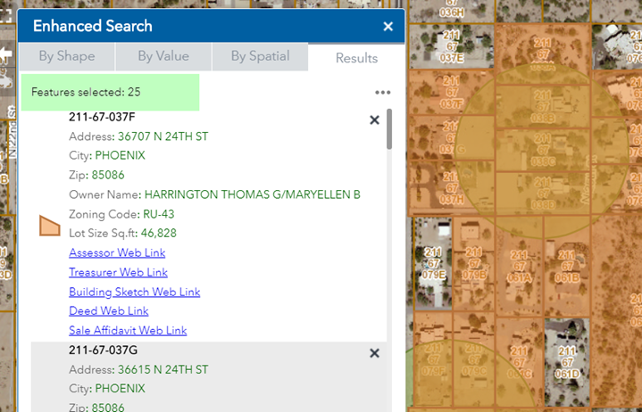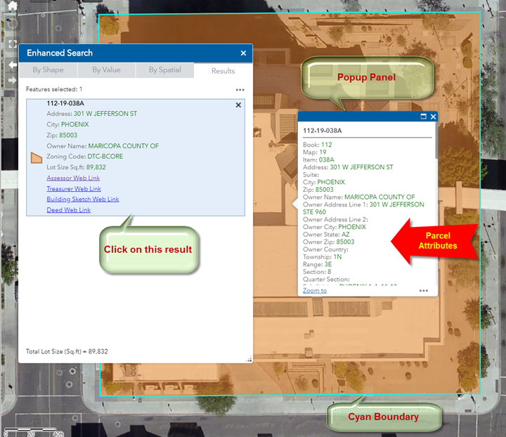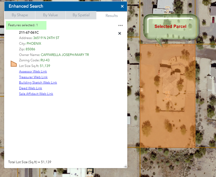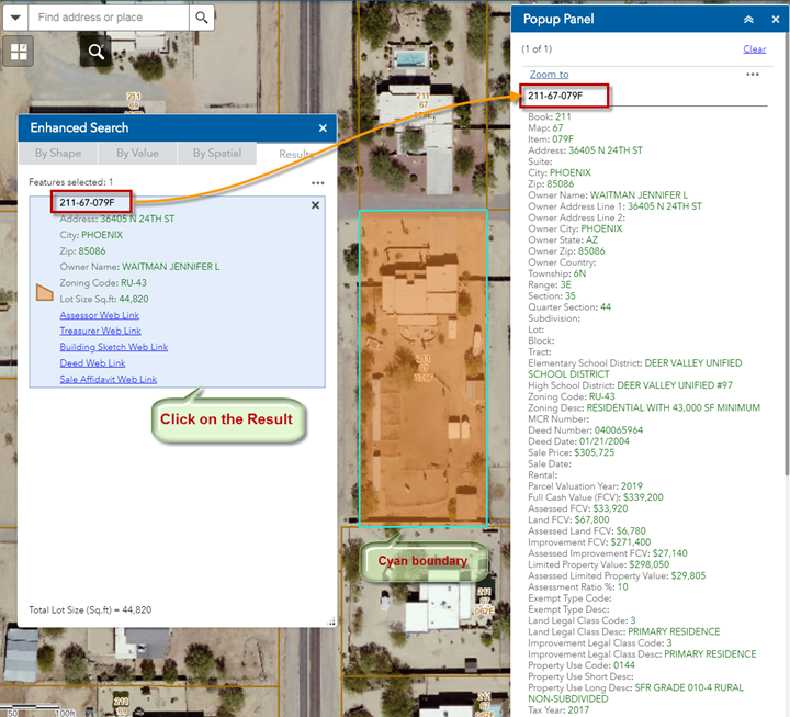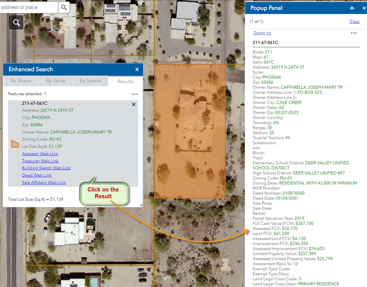 The Results Panel shows you the Parcel Number, Address and Owner Name.