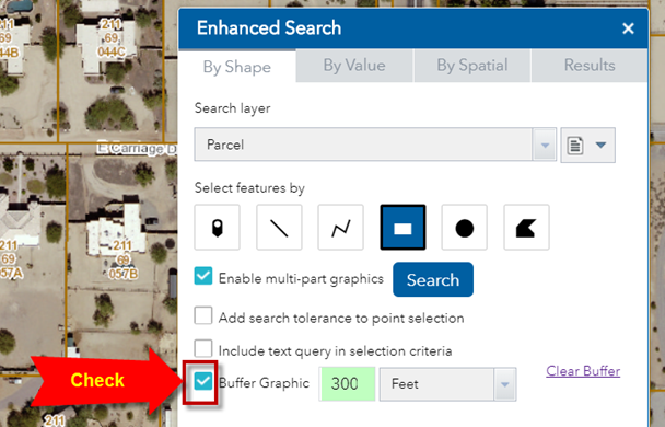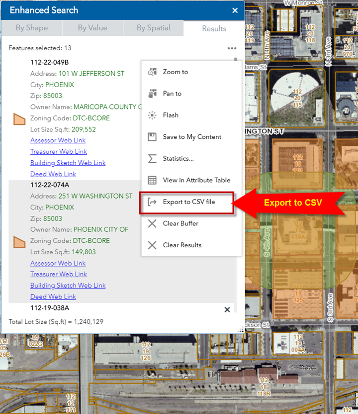 You are now going to find all the Parcels within 200ft of this selected Parcel and download all the information into an Excel Spreadsheet.