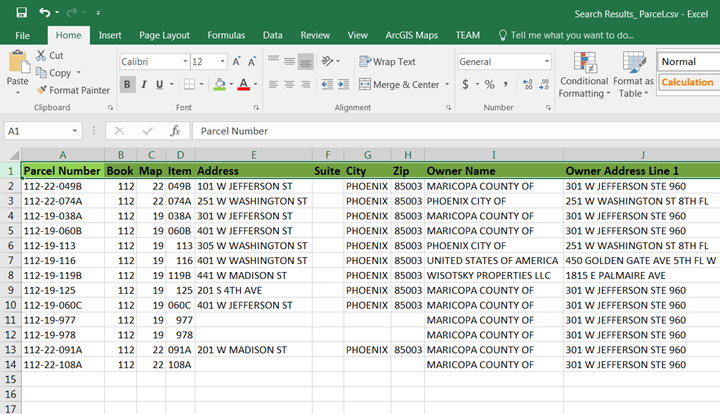 You can open the Search Results_Parcel.csv file in Excel and do further analysis.