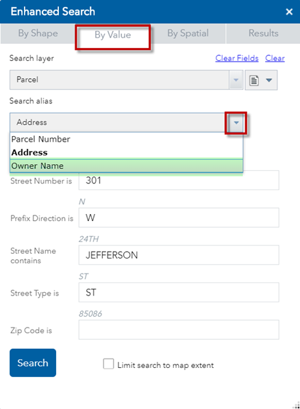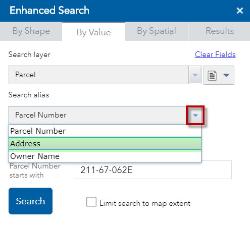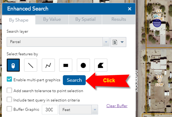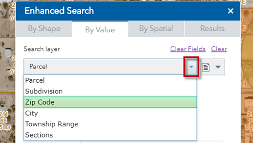 You may also use the Enhanced Search Widget to find a Subdivision, Zip Code, City, Township/Range or Section.