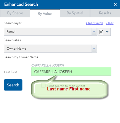 Accept the example Owner Name = CAFFARELLA JOSEPH