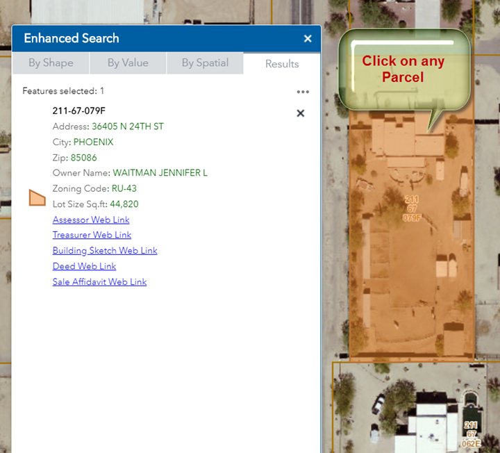 You can search for any Parcel by its Parcel Number, Address or Owner Name.