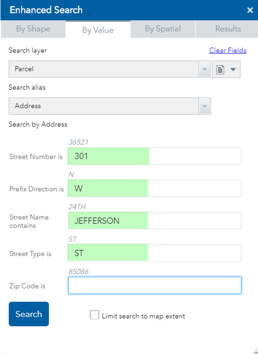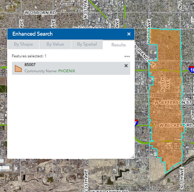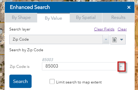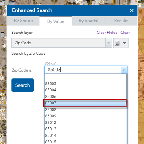 Click on the down arrow next to Zip Code to reveal a list of all the valid Zip Codes within Maricopa County.