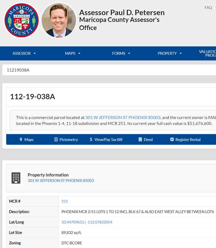 This opens the Assessor’s Website showing additional information on this Parcel.