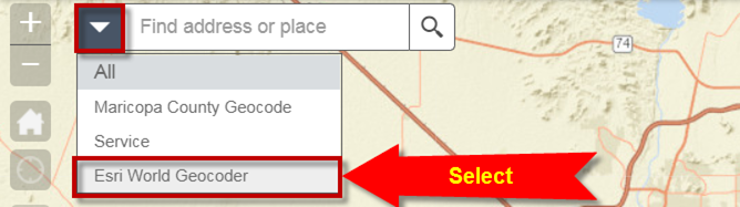 Select the Esri World Geocoder in the Search Tool.