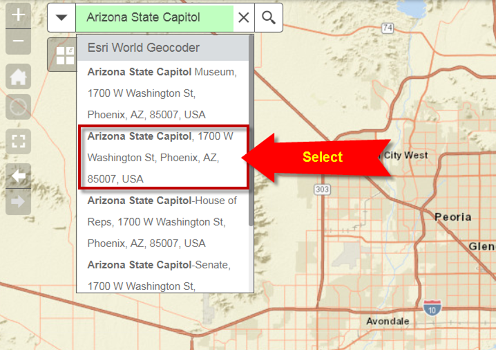 Enter Arizona State Capitol in the Search Tool.