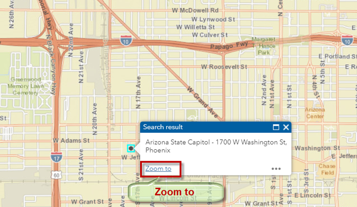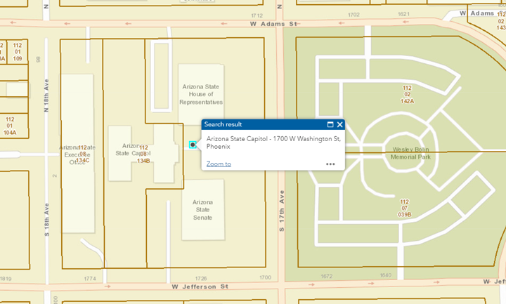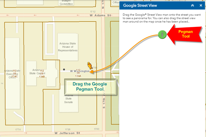 The map zooms to the Arizona State Capitol showing the surrounding streets.