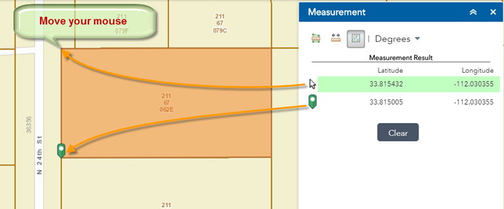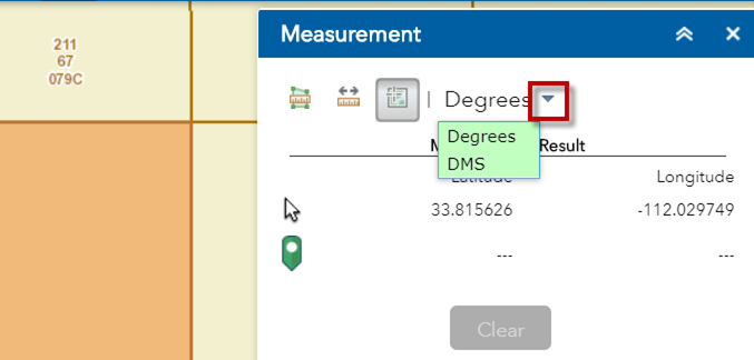 The lower readout gives the location of the last point you clicked on the map.