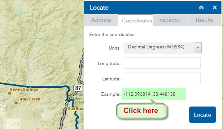 Click on the example coordinate pair.