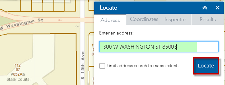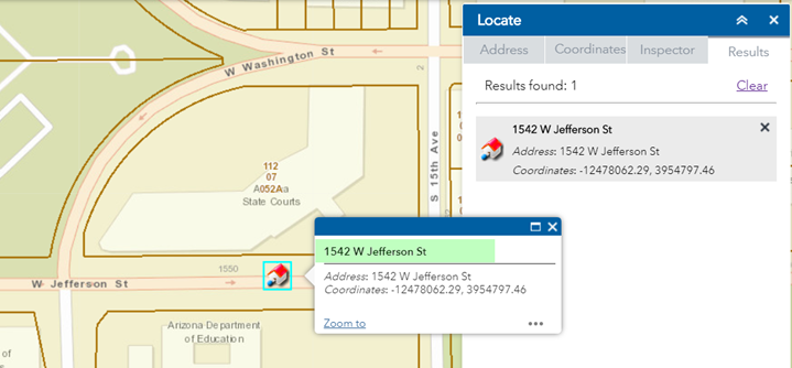 The Address Search in the Locate Widget uses the Maricopa County Geocoding Service.