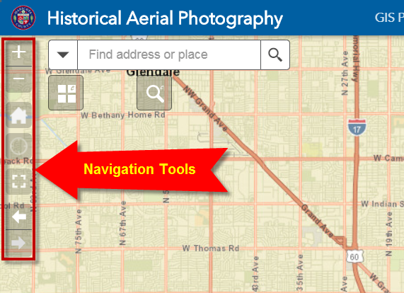 The Web Application has several tools that allow you to Pan and Zoom across the map.