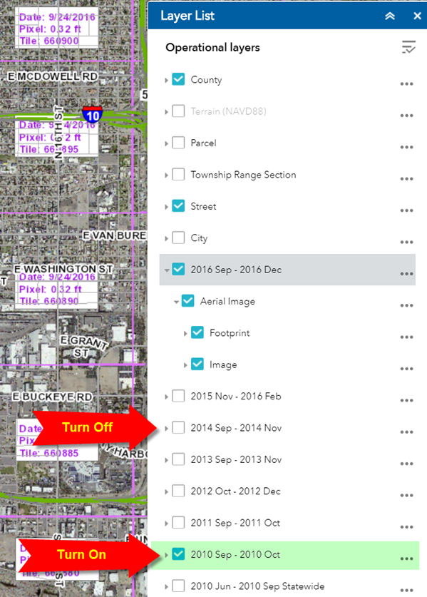 Next, you are going to swipe between the 2016 Imagery and the 2010 Imagery.
