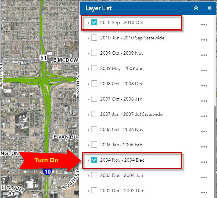 Next, you are going to swipe between the 2010 Imagery and the 2004 Imagery.