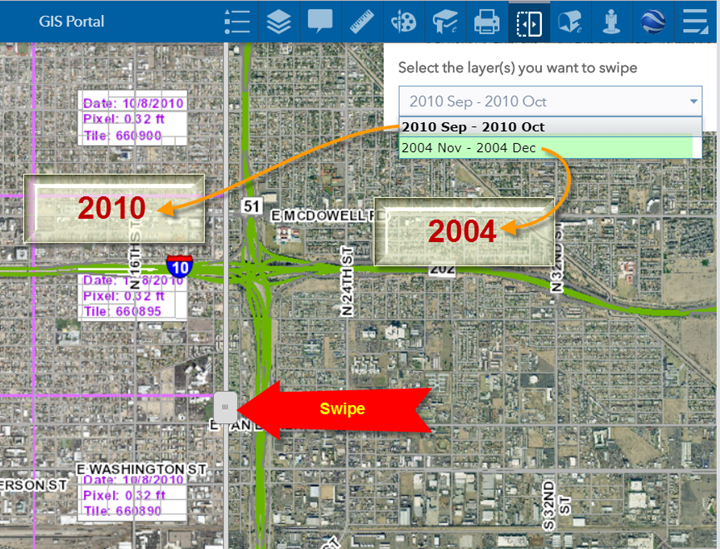 You can now Swipe between the 2016 Imagery on the left and the 2010 Imagery on the right.